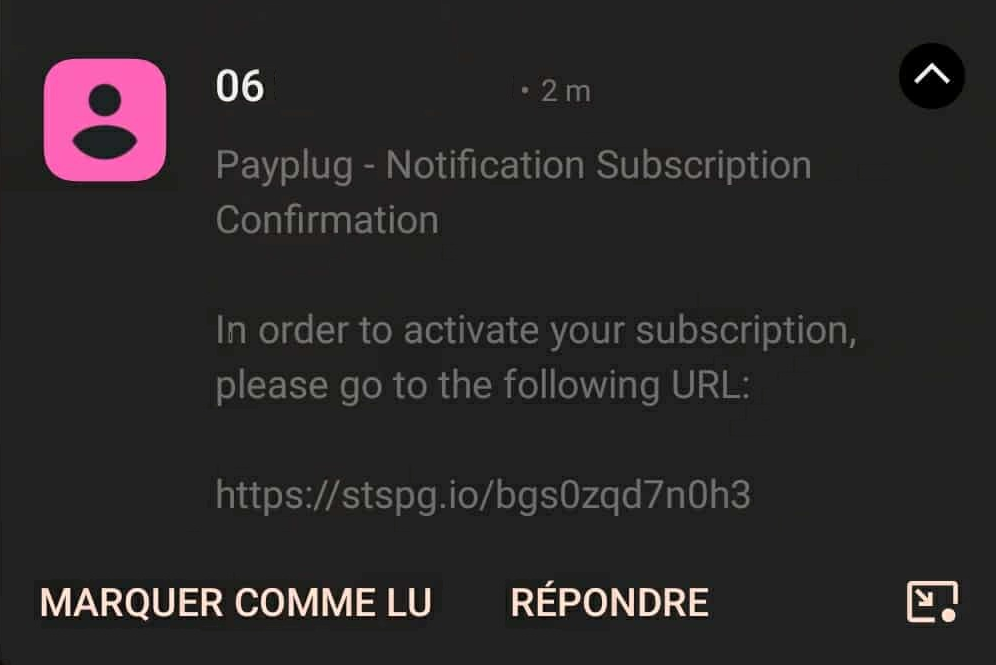 Once this step is completed, you will receive another message (by email or SMS, depending on the contact provided) confirming that your subscription has been successfully registered.
