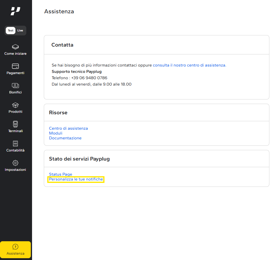 - Dalla sezione “Assistenza” nel menu del tuo Portale, clicca sul link “Personalizza le tue notifiche”