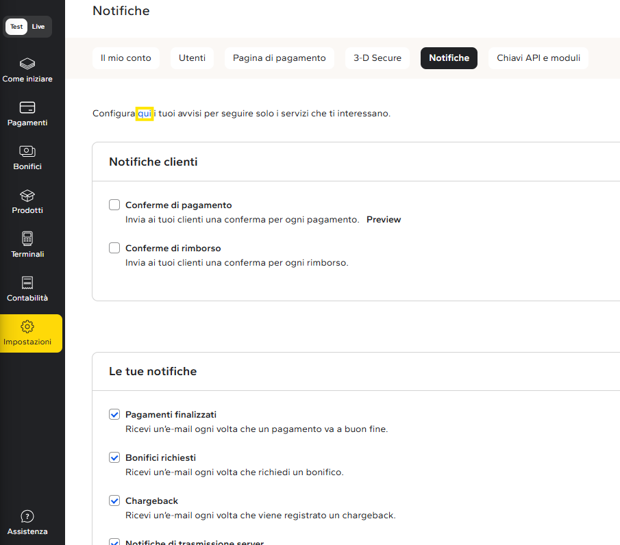 - Dalla sezione “Impostazioni” nel menu del tuo Portale, vai alla scheda “Notifiche”, quindi clicca sul link “qui” della frase: “Configura qui i tuoi avvisi per seguire solo i servizi che ti interessano.”